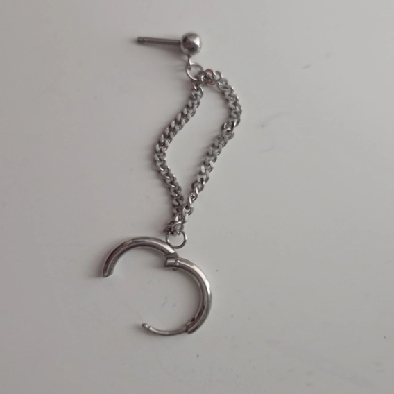 Klasyczny, srebrny clicker połączony ze sztangą łańcuszkiem, pięknie dopełni nam kompozycję na naszym uchu. Świetnie sprawdzi się jako kolczyk łączący dwa przekłucia: np helix i upper lobe oraz lobe i upper lobe. Dokładne wymiary produktu: kółeczko mierzy 10mm średnicy, długość łańcuszka wynosi 28 mm a kuleczka ma rozmiar 4mm. Kolczyk wykonany z najwyższej jakości stali chirurgicznej 316L. Łatwy w obsłudze, kółeczko to clicker, natomiast sztanga zakręcana jest prostą w użyciu kuleczką z gwintem zewnętrznym, którą wystarczy odkręcić. Pamiętaj aby kolczyk raczej ściągać do spania ponieważ łańcuszek może nam haczyć np. o włosy podczas snu. Cena za 1 sztukę.