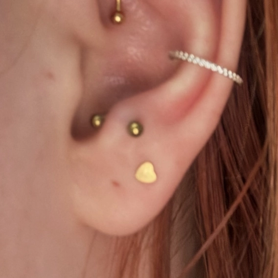 śliczny i uroczy kolczyk, bardzo ładnie wygląda na uchu, ja wzięłam na helixa ale widzę że fajnie będzie wyglądał też w innych przekłuciach
