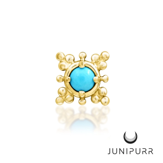 Do założenia takiej ozdoby potrzebny jest labret typu push-in (np. PRTK5-ZT lub PRT11 z naszego sklepu), ozdoby push-in mają uniwersalne mocowanie, które pasuje do każdego rozmiaru labretu. Zalecamy zakładanie biżuterii ze złota u profesjonalnej piercerki. Junipurr to kanadyjska marka, tworząca autorską, luksusową biżuterię kategorii premium. Kolczyki Junipurr są ręcznie robione z naturalnych kamieni i złota, pozyskiwanych w etyczny, zrównoważony sposób, z poszanowaniem dla środowiska naturalnego i praw pracowniczych. Wydobycie surowców użytych do produkcji nadzoruje Światowa Rada Złota. Junipurr wyznacza kierunki we wzornictwie w świecie piercingu, jest to biżuteria dla ceniących unikatowość i oryginalność, subtelne wzory Junipurr są bowiem często kopiowane przez innych producentów. Firma ściśle współpracuje z Assosiation of Profesional Piercers, najważniejszym stowarzyszeniem piercerów na świecie, działającym na rzecz podnoszenia standardów w branży. Kolczyki Junipurr mają atesty APP a pozbawione niklu złoto 14-karatowe z którego są wykonane, jest trwałe, piękne i przystępne cenowo.