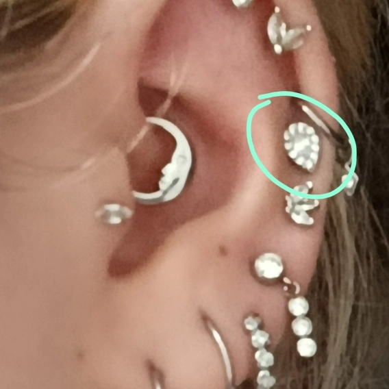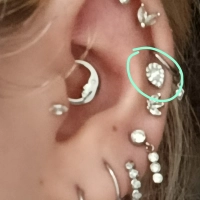 A labret is a bar-shaped earring that has a decorative cap (e.g. a ball or other type of jewellery cap) on one side and a flat disc on the other. In order to "open" such an earring and prepare it for insertion, it is sufficient to unscrew the ball/nut. Nothing is done with the disc, as it is permanently attached to the rod and no attempt should be made to unscrew it. The earring is inserted from the back of the piercing, so that the decorative nut is visible from the front, and the disc to prevent the earring from falling out from the back of the piercing. The caps can have different shapes (balls, stars, crystals, flowers...) and different threads (external or internal). Pay attention to this when buying a new decorative nut.