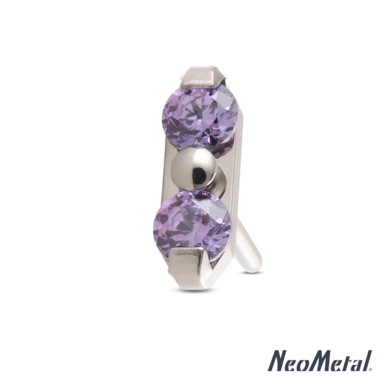Dwie cyrkonie premium w oprawie prong set. Najwyższej jakości cyrkonie osadzone są na podstawie bez użycia kleju, dzięki czemu ta biżuteria pozostanie idealnym stanie przez wiele lat. Idealnie wypolerowany Tytan ASTM F-136 sprawdzi się nawet osób z bardzo wrażliwą skóra i nie zakłóci procesu gojenia świeżego przekłucia. Ten model pasuje do wielu miejsc na uchu lub w nosie, a mocowanie typu push-in możesz z łatwością połączyć z labretem lub bananem. Do założenia takiej ozdoby potrzebny jest labret lub banan typu push-in (np. PRTP1 z naszego sklepu). Ozdoby push-in mają uniwersalne mocowanie, które pasuje do każdego rozmiaru gwintu. NeoMetal to amerykański producent biżuterii do piercingu od lat wyznaczający standardy w branży. To w ich pracowni powstał pierwszy kolczyk z mocowaniem typu push-in. Dziś tego typu biżuteria jest wybierana przez najlepszych piercerów. Tytanowe ozdoby push-in z NeoMetal są perfekcyjnie wykończone, dzięki czemu możemy zakładać na świeże przekłucia również ozdobne kolczyki. Ich kryształki olśniewają wyjątkowym blaskiem i są mocowane bez użycia kleju. Wszystko to powstaje od roku 1997 w manufakturze w Kaliforni z tytanu oraz złota pozyskiwanego na terenie Stanów Zjednoczonych. NeoMetal to również wieloletni sponsor Asossiation of Profesional Piercers - stowarzyszenia z którym wspólnie działają na rzecz podnoszenia standardów w branży piercingowej. Wszystkie ich ozdoby posiadają najważniejsze w branży Certyfikaty APP. NeoMetal to gwarancja wyboru doskonałej biżuterii, która nigdy nie wyjdzie z mody i nie ulegnie zniszczeniu nawet po wielu latach noszenia.