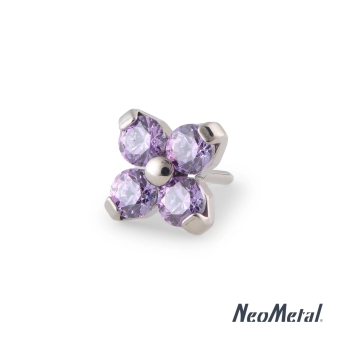 Cztery cyrkonie premium w oprawie prong set. Najwyższej jakości cyrkonie osadzone są na podstawie bez użycia kleju, dzięki czemu ta biżuteria pozostanie idealnym stanie przez wiele lat. Idealnie wypolerowany Tytan ASTM F-136 sprawdzi się nawet osób z bardzo wrażliwą skóra i nie zakłóci procesu gojenia świeżego przekłucia. Ten model pasuje do wielu miejsc na uchu lub w nosie, a mocowanie typu push-in możesz z łatwością połączyć z labretem lub bananem. Do założenia takiej ozdoby potrzebny jest labret lub banan typu push-in (np. PRTP1 z naszego sklepu). Ozdoby push-in mają uniwersalne mocowanie, które pasuje do każdego rozmiaru gwintu. NeoMetal to amerykański producent biżuterii do piercingu od lat wyznaczający standardy w branży. To w ich pracowni powstał pierwszy kolczyk z mocowaniem typu push-in. Dziś tego typu biżuteria jest wybierana przez najlepszych piercerów. Tytanowe ozdoby push-in z NeoMetal są perfekcyjnie wykończone, dzięki czemu możemy zakładać na świeże przekłucia również ozdobne kolczyki. Ich kryształki olśniewają wyjątkowym blaskiem i są mocowane bez użycia kleju. Wszystko to powstaje od roku 1997 w manufakturze w Kaliforni z tytanu oraz złota pozyskiwanego na terenie Stanów Zjednoczonych. NeoMetal to również wieloletni sponsor Asossiation of Profesional Piercers - stowarzyszenia z którym wspólnie działają na rzecz podnoszenia standardów w branży piercingowej. Wszystkie ich ozdoby posiadają najważniejsze w branży Certyfikaty APP. NeoMetal to gwarancja wyboru doskonałej biżuterii, która nigdy nie wyjdzie z mody i nie ulegnie zniszczeniu nawet po wielu latach noszenia.